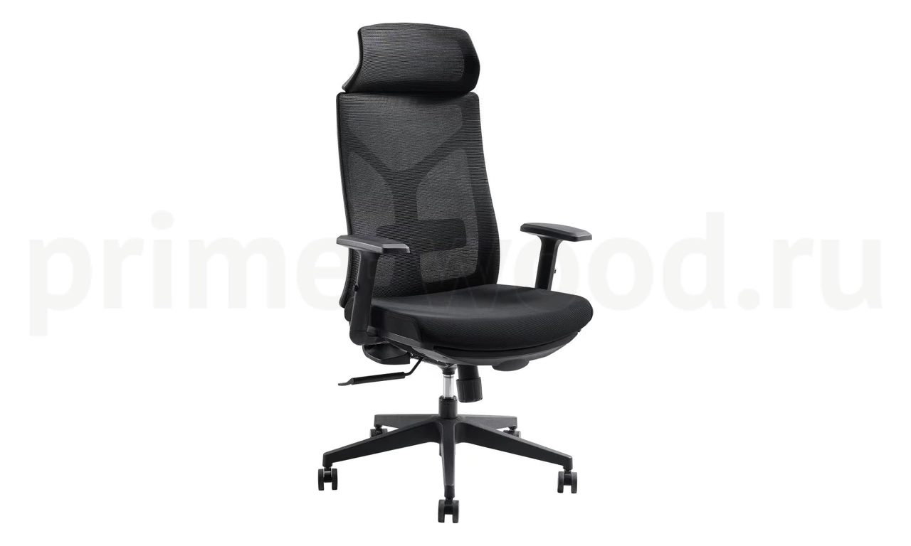 Черный каркас, нерегулируемый подголовник, регулируемая поясничная поддержка по высоте, мягкие регулируемые подлокотники по высоте, синхромеханизм с возможностью фиксации в 4 положениях, черная крестовина.