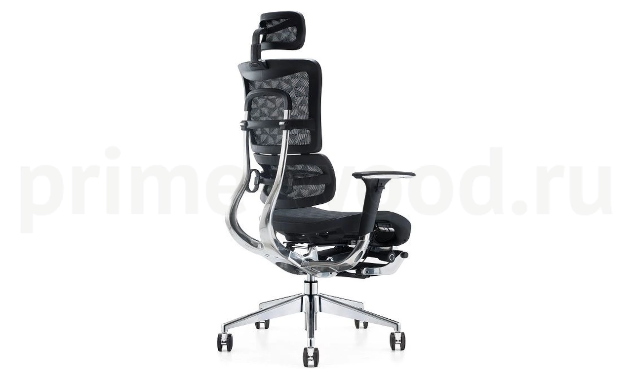 Эргономичное кресло руководителя Эрго с сетчатой спинкой, подголовником, подножкой для отдыха и множеством регулировок обеспечит комфортную и эффективную работу.