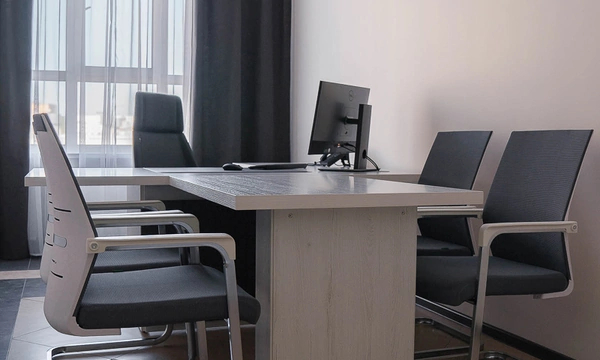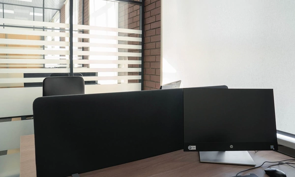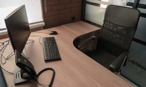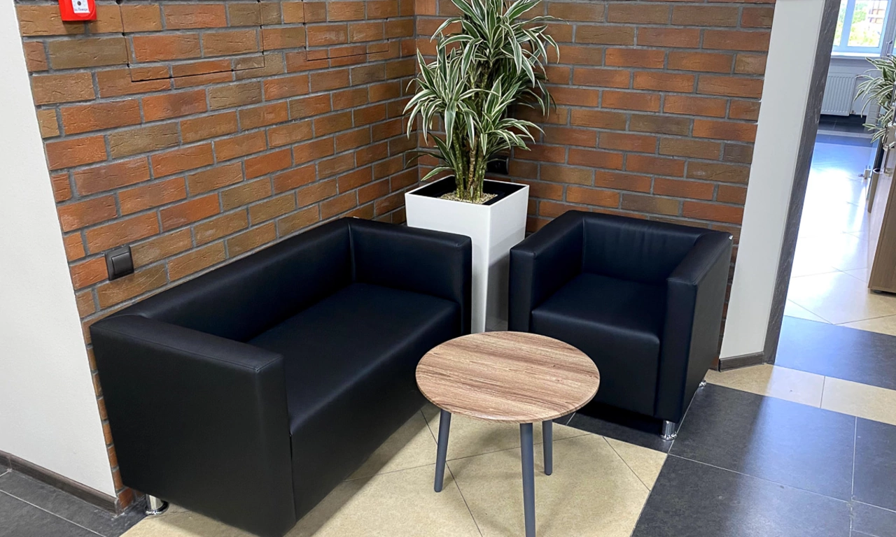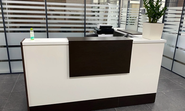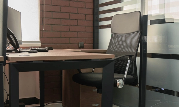 Сроки на подготовку нового офиса были сжатые, поэтому выбор заказчика сужался только теми коллекциями, которые было возможно поставить максимально оперативно. Для персонала была выбран наш хит продаж - Onix на металлических опорах в цвете антрацит, а под цвет опор подобраны классные чёрные текстильные перегородки. На креслах для сотрудников решили не экономить, каждый сотрудник получил кресло руководителя 8074 с дышащей сетчатой спинкой и подголовником из кожи или полностью кожаное кресло 6003-1s на выбор.