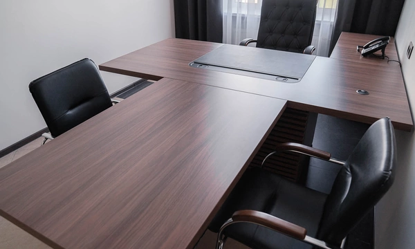 Для более консервативного коллеги из соседнего кабинета отлично подошёл тот же Time.S, но в строгом оттенке дерева "палдао" в паре с классическим креслом Royal.