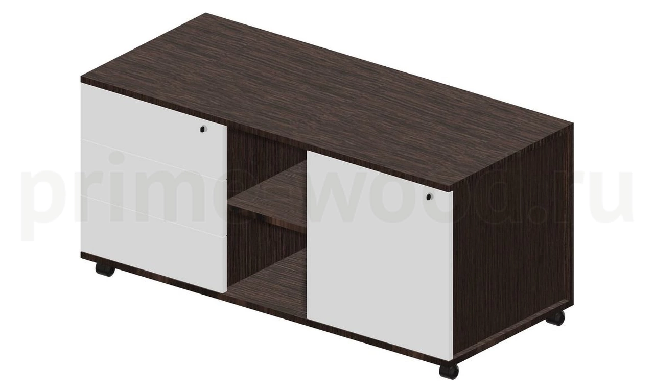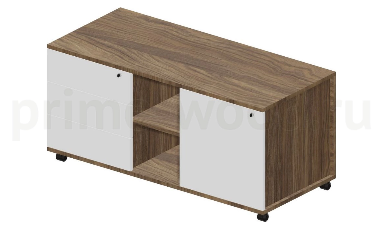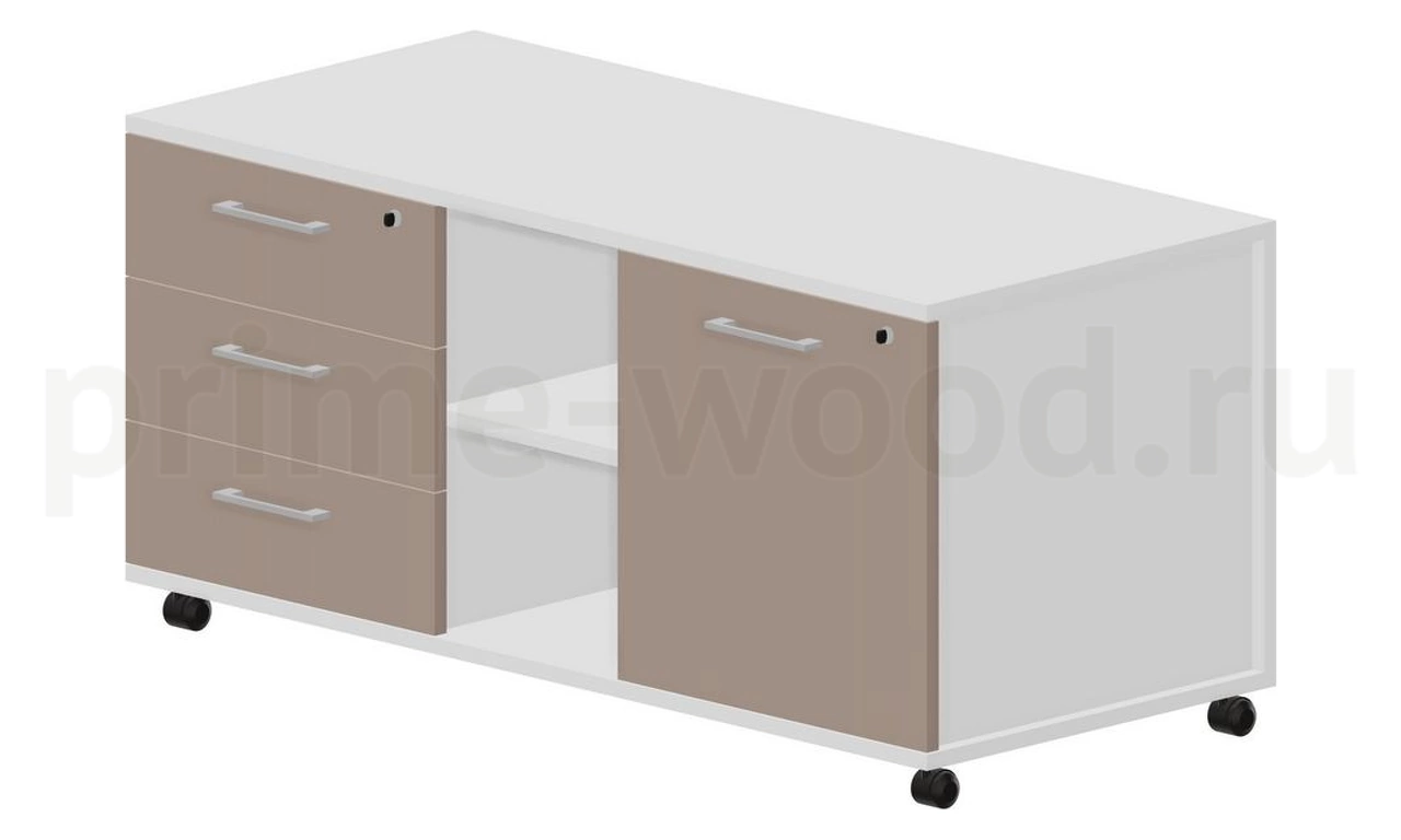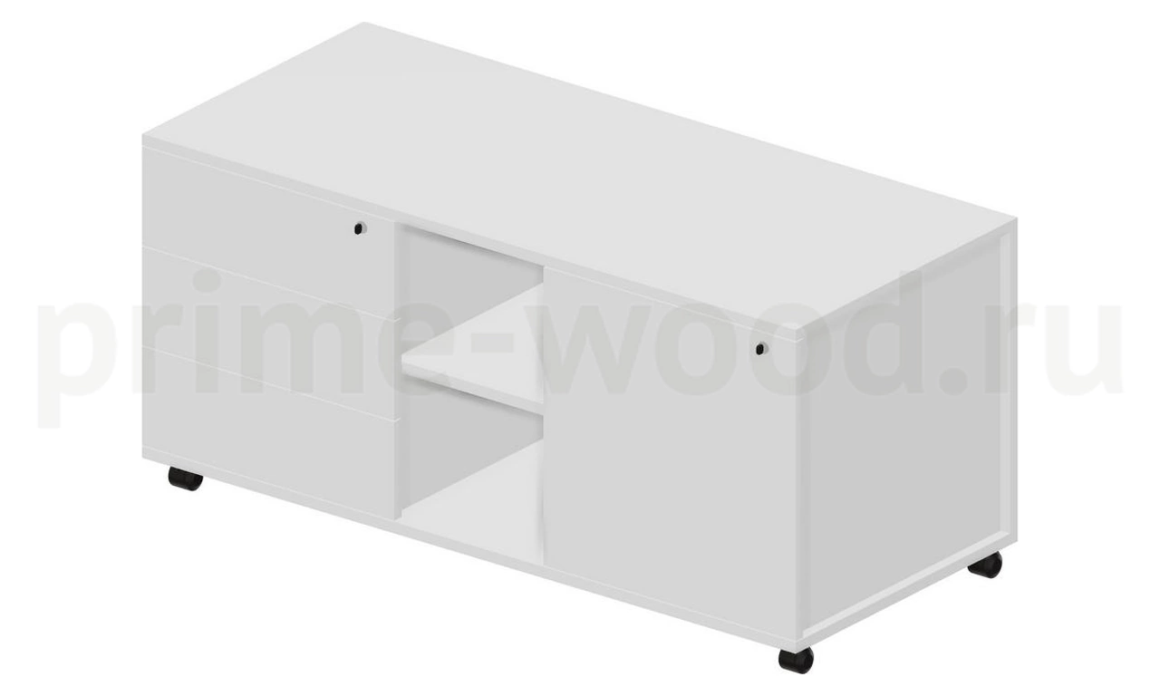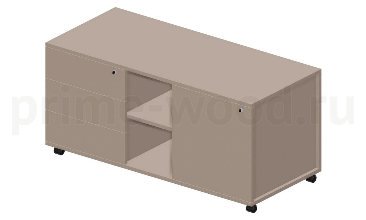 Тумба мобильная сервисная левая (3 секции, стандартные колёсные опоры, без ручек) 120х53х57см